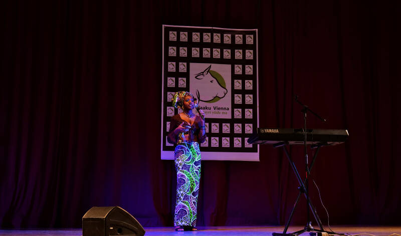 At the heart of the Pulaaku Vienna celebration, acclaimed poet Gawdesque captivated the audience with a powerful spoken word performance that echoed the event’s spirit of identity, resilience, and cultural unity.